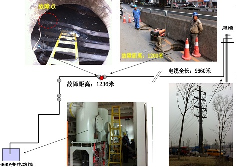 電壓等級(jí):66kV 電纜長(zhǎng)度:約10公里 故障類(lèi)型:B相接地