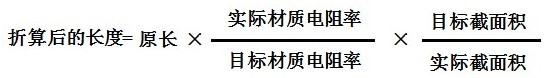折算后的長度=原長×(實際材質(zhì)電阻率/目標材質(zhì)電阻率)×(目標截面積/實際截面積)