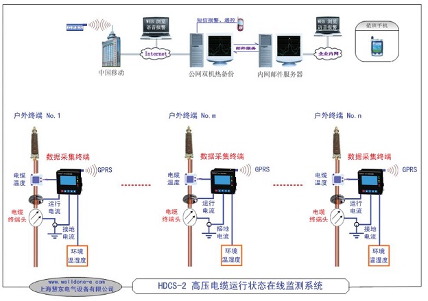我公司利用現(xiàn)代電力電子技術(shù)、計(jì)算機(jī)技術(shù)和GPRS通訊技術(shù)研發(fā)的高壓電纜運(yùn)行狀態(tài)在線監(jiān)測(cè)系統(tǒng),可實(shí)時(shí)監(jiān)測(cè)電纜金屬護(hù)層循環(huán)電流、運(yùn)行電流、電纜表面溫度、水位及井蓋,并以GPRS通訊方式將測(cè)量數(shù)據(jù)發(fā)送給監(jiān)控服務(wù)器。監(jiān)控軟件可靠保存數(shù)據(jù),通過繪制各種參數(shù)的變化趨勢(shì)波形圖、記錄數(shù)據(jù)表等方法向用戶提供分析前提,并采用自研算法判斷電纜絕緣情況是否良好,若某個(gè)運(yùn)行參數(shù)出現(xiàn)故障時(shí)可將故障信息以GSM短信方式發(fā)送給用戶,從根本上避免了電纜事故的發(fā)生,保證電纜安全、可靠的運(yùn)行。