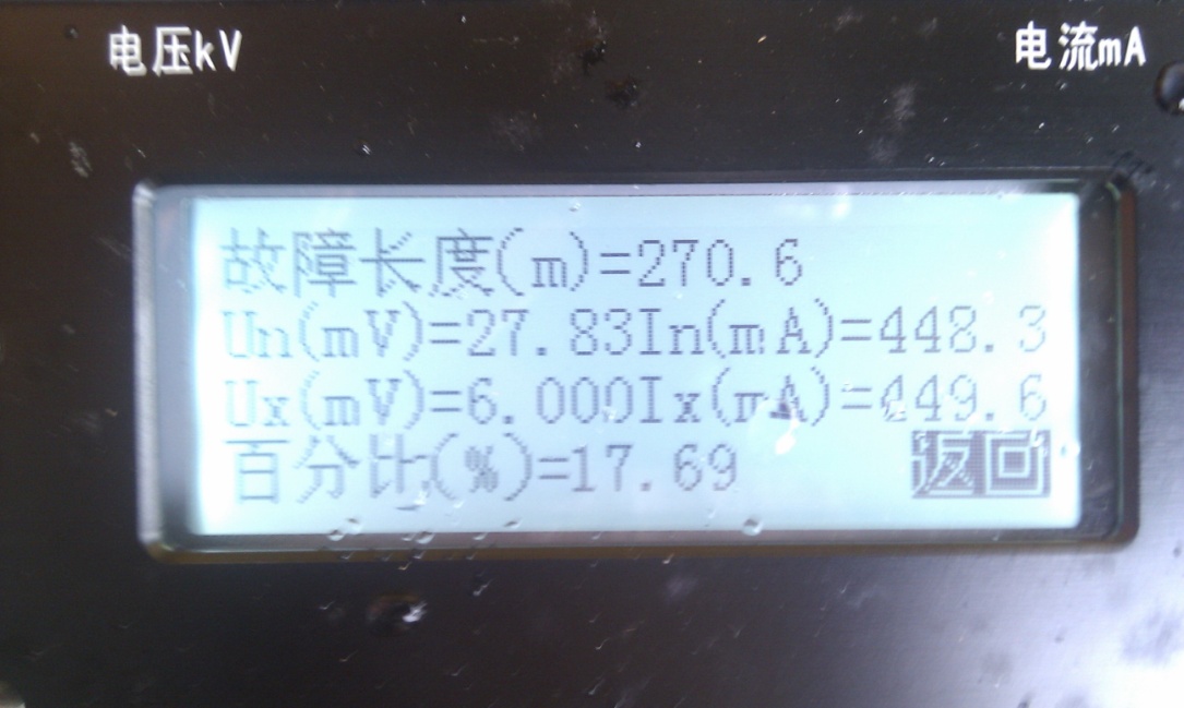 測量2次:第一次結(jié)果為:17.77% 故障點距離為3636 m,換一端測量。