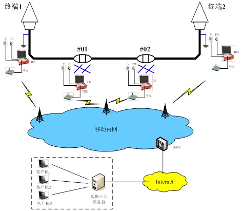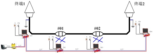 以下采用1個完整交叉互聯(lián)段的高壓XLPE絕緣電纜線路模型,說明如何使用高壓電纜耐壓同步局放監(jiān)測系統(tǒng)進行局部放電測試。分為光纖組網(wǎng)和無線4G組網(wǎng)兩種應用方式說明。